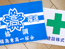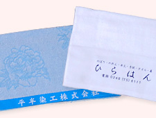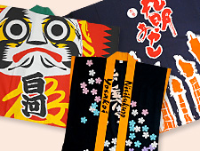 商品一覧 ホーム > 商品一覧 世界に一つだけのオリジナル商品 平半染工の商品をご紹介いたします。これら以外にもお客様のご希望の品を製作いたしますので、お気軽にお問い合わせください。小ロット生産にも対応いたしますので、世界に一つだけのオリジナル商品を創りましょう。 手ぬぐい 暖簾(のれん) 幟(のぼり) 半纏(はんてん) 旗(はた) 幕(まく) 名入れタオル Tシャツ・トレーナー その他
