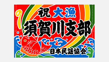 現在の旗は、製版と捺染技術の進歩により、複雑で多色のデザインや写真などを取り入れたスポーツの応援旗、イベント・祭りのチーム旗のような大判で全体に柄や文字をカラフルにあしらった旗も増えてきました。一方では、神社・寄席・歌舞伎・相撲などに使われる昔ながらの旗は、国古来の伝統的な感性をもつ物として、昔ながらの綿生地に引染などの手染めの技法で作られた物が受け継がれています。