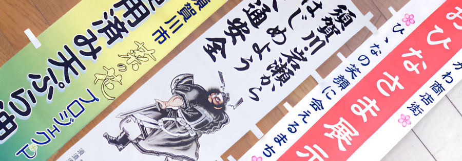 現在では、屋外広告を主としており、布も耐候性を主眼に合成繊維が多く用いられています。